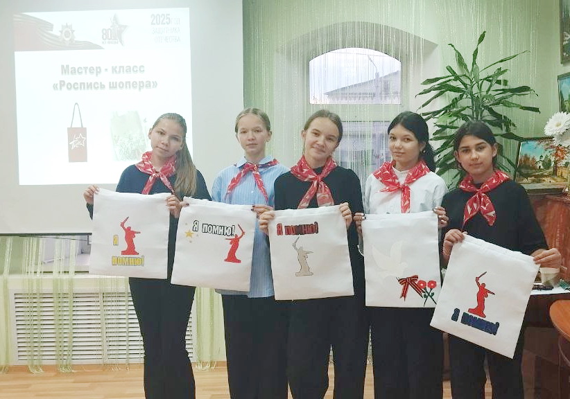 В ознаменование Года защитника Отечества и 80-летия Великой Победы, объявленных Президентом Российской Федерации В.В. Путиным, в Тоншаевском краеведческом музее состоялся творческий мастер-класс «Роспись шопера». Юные художники, вооружившись кистями и вдохновением, превратили обыденные сумки в живые холсты, запечатлев на них неугасающий дух памяти и безмерной благодарности.