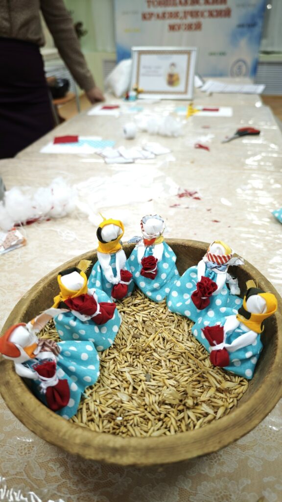 Первым делом Мирянгина Валерия Олеговна, методист по музейно-образовательной и научно-просветительской деятельности, рассказала об истории кукол-оберегов, их древних корнях и символическом значении. Первые узнали, что каждая деталь, каждый узелок в такой куколке несет в себе определенный смысл, наделяя её защитными свойствами.