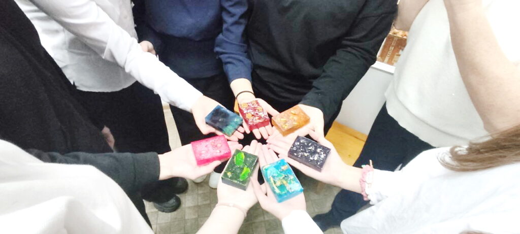 Под чутким руководством мастера Петровой Екатерины Павловны школьники создали свой неповторимый мыльный шедевр. Но это был не просто урок ремесла — это был полёт фантазии! Ребята с большим энтузиазмом и креативом подошли к делу: самостоятельно выбирали цвета и отдушки для своего будущего кусочка мыла.